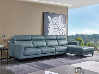 CBD家居 现代简约 接触面真皮+非接触面仿皮+东亚海绵+云杉木实木主框架 TE07天青色 1+3+左手贵妃 转角3.156米沙发