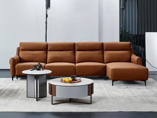 德卡图 现代简约 接触面进口头层牛皮+高回弹海绵+高密度海绵+俄罗斯进口落叶松框架+靠背公仔棉 单位(功能)+三位+左贵妃位 焦糖橙色 皮艺转角3.3米沙发