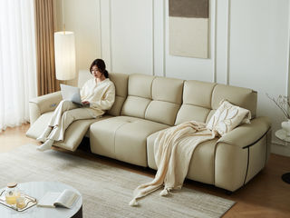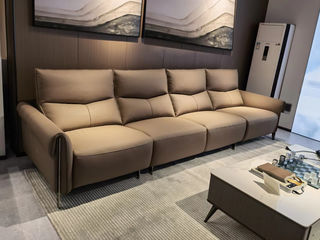 非凡工艺 现代简约 接触面进口头层牛皮+进口 落叶松+高 回弹海绵+高承重碳 钢功能架+零靠墙锐迈电机+单电动功能 碳素钢脚 3.1米 四人位 单电动功能沙发