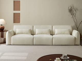 梵纳意简 极简 雪尼尔绒布艺+实木+多层实木板+静音平推功能电机 白色 2.75米三电机 电动功能沙发