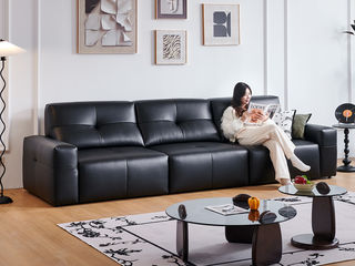 洛萨 现代 全真皮 进口松木内架 高回弹45密度海绵 四人位 电动功能3.05米沙发