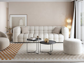 云端 奶油风 羊羔绒布料+抛光实木内架+合成板材框架+坐包填充高密度纯海绵+5公分实木圆脚 米白色 2.7米四人位+圆凳