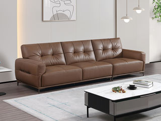 B系优选 现代简约 接触面中厚头层牛皮面料+进口俄罗斯松木框架+高回弹海绵+仿真皮 四人位 3.27米沙发