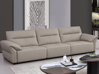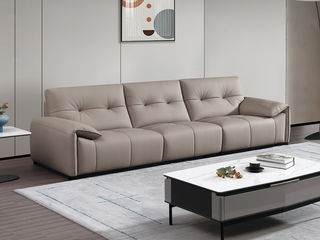 B系优选 现代简约 接触面头层黄牛皮+仿皮 E1级夹板+松木框架 无粉海绵 靠包赛羽绒+公仔棉填充 样色 直排3.2米四人位 皮艺沙发
