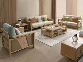简森曼 北欧风 科技布+扶手坐板背架为橡胶木 座板下两条托方为松木 原木色 1+2+3沙发组合(不含茶几边几) 【实木拼接工艺】