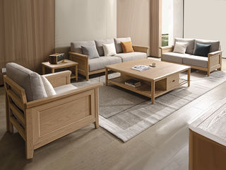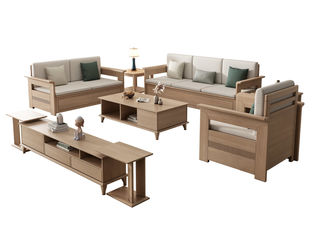 简森曼 北欧风 科技布+扶手前方靠背框架为橡胶木 靠背板为桉木芯 坐板为松木 原木色 1+2+3沙发组合(不含茶几边几) 【实木拼接工艺】