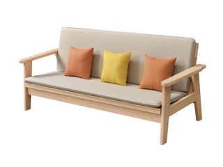 优木集 现代简约 接触面棉麻面料+高回弹海绵+白蜡木实木框架+橡胶木 1.17米沙发