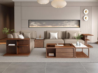 墨槿 新中式 科技布+高密度海绵 +小乌金+实木多层板 乌金色 单人位沙发+双人位沙发+三人位 组合沙发