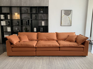 希奥 极简 全套绒布面+高密度座包海棉+羽绒拼包布衣 网红豆腐块3.19米沙发(4+脚踏)