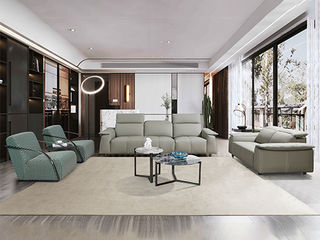 e家优选 现代简约 接触面头层黄牛皮 按木松木组合内框架 蛇簧+绷带 高回弹海棉座包靠包 扶手羽绒填充 头枕6档可以调节功能 二人位+四人位 皮艺组合功能沙发