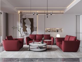 希奥 极简+纳帕平纹皮+40-45密度+五金脚 国潮红 皮艺(1+2+3)组合沙发