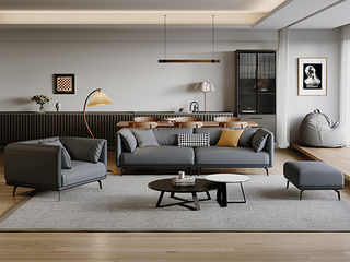 非凡工艺 现代简约 科技布+坐垫+实木落叶松框架 +靠背公仔棉 单人位+四人位+脚踏 组合布艺沙发