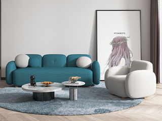 拜洛迪 轻奢 泰迪布 宝马灰三人位+绿色+橙色 休闲组合沙发