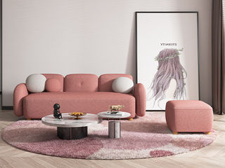 非凡工艺 现代简约 北欧 细纹棉麻布料+抱枕填充优质公仔棉+抛光实木内架(桉木为主)+ 高密度纯海绵+实木脚 玫红 脚踏+三位 2.15米沙发