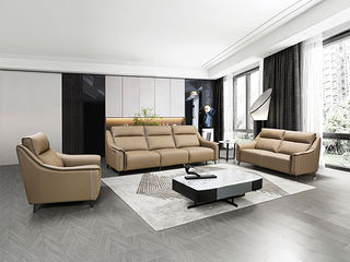 CBD家居 现代简约 接触面真皮+非接触面仿皮+超弹海绵+云杉木实木主框架+五金脚 三人位+单人位 3.45米沙发
