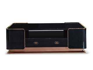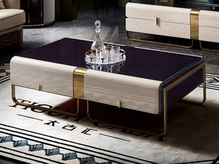 拉斐尔 轻奢 天然木皮+多层实木板+电镀五金+仿真皮 1.6米茶几