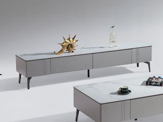 小红书系列 现代简约 烤漆柜体+亮光鱼肚灰岩板+黑砂碳素钢脚架 2米电视柜(未开电源孔)