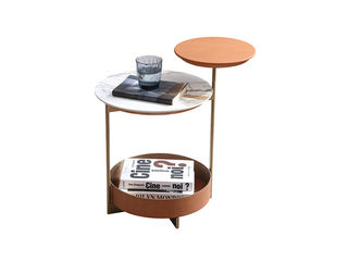小红书系列 现代 马鞍皮+岩板+油漆面+电镀不锈钢架 0.6米边几