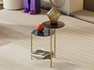 洛萨 极简 E1级中纤板贴尤加利木皮+不锈钢+天然石(爱马仕灰) 0.5米边几