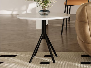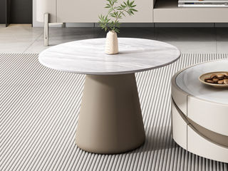 拜洛迪 轻奢 底架扪皮+大理石 浅卡其色 圆形 0.4米角几