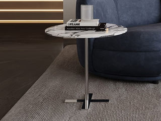 贝斯solo 设计师 网红 极简 不锈钢脚+鱼肚白人造石 0.6米边几