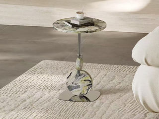 拜洛迪 轻奢 不锈钢+大理石面 黑色 圆形 0.5米角几边几