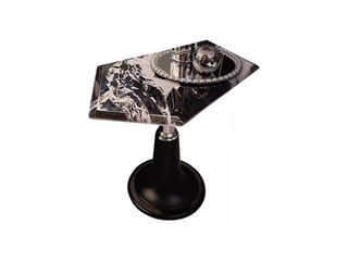 缔造 极简 黑玫瑰天然石+ 不锈钢电镀灰钛拉丝 0.5米边几