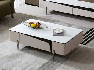 【套餐专享价】每屋优享系列 现代简约 彩晶石+密度板+ 不锈钢五金脚 1.25米茶几