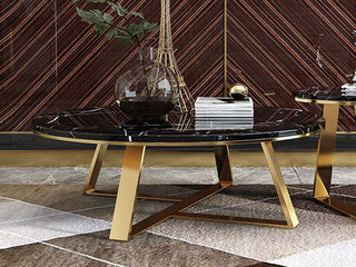 拉斐尔 轻奢 大理石+电镀不锈钢五金 1.3米茶几