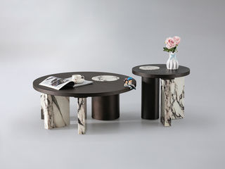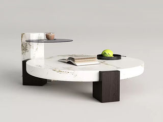 小红书系列 现代 E1纤维板贴烟熏色哑光木皮+天然大理石米洞树脂亮光漆 0.85米组合茶几