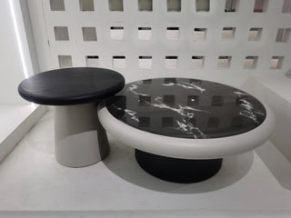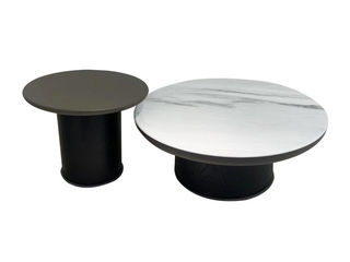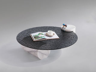 小红书系列 现代简约 桌面:灰色水纹玻璃脚架:大理石 0.9米圆茶几