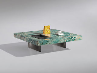 小红书系列 现代简约 桌面:大理石亚马逊绿脚架:不锈钢黑钛 1米方形茶几