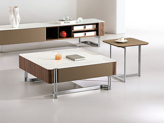 【套餐专享价】每屋优享系列 现代简约 中纤板烤漆+超晶石+胡桃木皮+不锈钢五金 1.3米茶几+边几