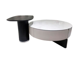 皇朝家居 现代极简 柜身材质板木结合+油漆工艺喷涂烤漆+不锈钢贴木皮脚+8MM微晶面 圆形 1.315米组合茶几