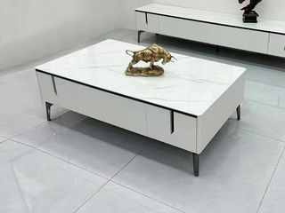 拉斐尔 轻奢 多层实木板+大理石+电镀不锈钢五金+烤漆 1.2米茶几