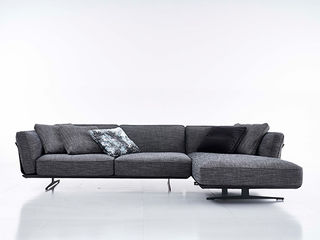 B系优选 现代简约 高级棉麻布+环保西皮+仿皮+优质回弹海绵+框架落叶松木+3A级公仔棉+多层实木夹板+黑砂铁艺脚 3.6米转角沙发 (3+左转角贵妃)