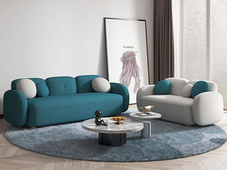 非凡工艺 现代简约 北欧 细纹棉麻布料+抱枕填充优质公仔棉+抛光实木内架(桉木为主)+ 高密度纯海绵+实木脚 米白+孔雀蓝 1+3 沙发