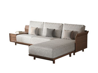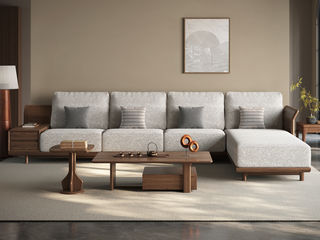 墨云阁 中古风 南美胡桃木+多层实木板+实木内架+高回弹海绵+棉麻 1+3+左贵妃 3.35米沙发