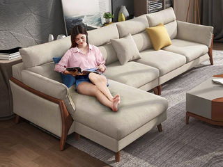 希奥 极简 棉麻布艺 俄罗斯樟子松 1+3+左贵妃 转角3.9米沙发