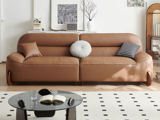 中古·尚 极简 生态真皮+仿皮+多层实木板+实木内架+高回弹海绵+实木5分脚 卡其色 大四位 3.24米沙发