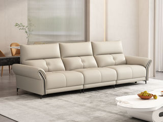 A系优选 现代简约 接触面生态真皮+赛羽绒扶手包+高密度东亚海绵+实木框架 3.1米沙发