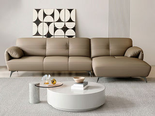【套餐专享价】每屋优享系列 现代简约 生态真皮+高密度海绵+ 实木框架+五金脚 3.16米 3+左贵妃 转角沙发