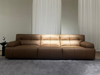 德卡图 现代简约 松木+多层板板+头层牛皮全真皮+高回弹海绵+靠包羽绒填充+五金脚 四人位 3.18米沙发