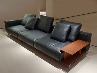 德卡图 现代简约 头层黄牛皮全皮 黑钛拉丝不锈钢五金框架 俄罗斯落叶松+多层板 填充: 靠包羽绒填充+高回弹海绵 四人位(固定坐包)3.1米沙发