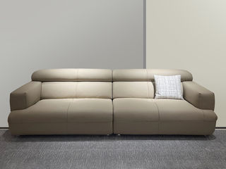 德卡图 现代简约 松木+多层板板+头层牛皮全真皮+高回弹海绵+靠包羽绒填充+胶脚 四人位 3.18米沙发