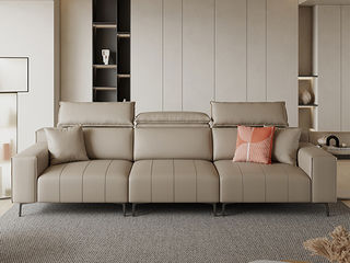非凡工艺 现代简约 猫爪皮+框架落叶松木+高档黑砂五金脚 头枕可调节 3.08米 五人位(左单+单+右单) 沙发