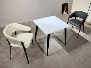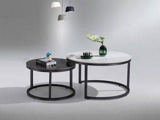 甄品家具 现代简约 桌面:岩板+底板脚架:黑砂碳素钢 0.6米洽谈桌