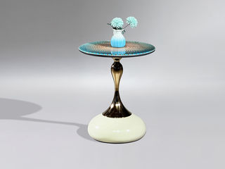 小红书系列 现代简约 桌面:9mm岩板3D打印-网型绿脚架:奶白底座 0.45米边几