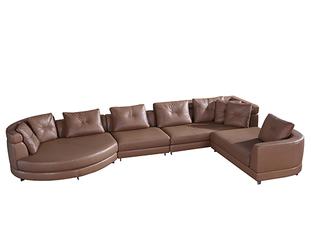 德卡图 现代简约 松木+多层板板,头层牛皮靠包羽绒填充 左方贵妃+无扶手三位+无扶手三位+无扶手单位1.75米沙发