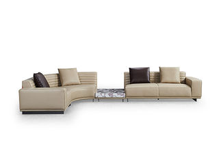 梵纳意简 极简 生态皮+棉麻布+多层实木板+实木框架+高回弹海绵+不锈钢五金+羽绒 右转角弧形沙发 网红 极简法拉利4.3米沙发